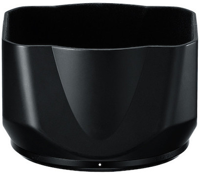 This hood blocks stray light from entering the lens, and it protects the front element of the lens from sudden impacts or drops. This hood serves as a spare or replacement for the one provided with the original lens.