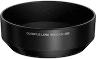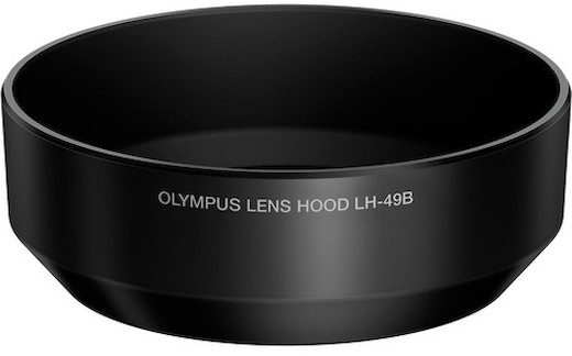 The used black LH-49B Hood from Olympus is compatible with their M.Zuiko Digital 25mm f/1.8 lens.