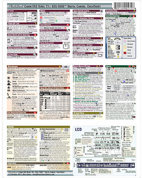 PhotoBert has distilled the information in that text into this used compact, abbreviated, double-sided Cheat Sheet in full color. The reference guide serves as a quick, convenient alternative to the manual, offering tips and descriptions of features and helping you learn about the functions of your T7i camera.