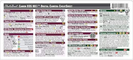 Authored by Bert Sirkin, it addresses a comprehensive range of camera functions on an 8.5 × 11″ double-sided sheet with a 3-mil thick waterproof lamination. Additionally, the PhotoBert CheatSheet is pre-folded into thirds. When completely folded, it measures 4 × 8.75″ for portability.