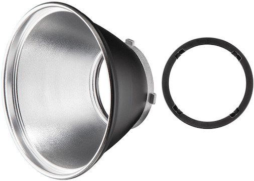 The used Westcott 5" Reflector is designed to fit their FJ80 Universal Speedlite with included magnetic mounting ring and FJ200 strobe to give you more control over where the light falls on your subject and scene.