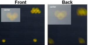 Out of focus highlights from Lens B in front of and behind the image plane.