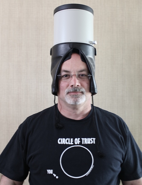 I generally consider jeans and any shirt with a collar to be dressed up. There are, however, certain occasions when ‘clothing makes the man’, as they say. For example, when interviewing job applicants, I usually wear the 800mm Hood of Camera Knowledge. Dressing appropriately for the interview, I believe, helps predict whether the applicant really is someone we’d bring into our little circle of trust. Or maybe helps them predict if they really want to work here.