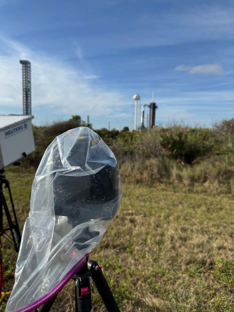 First and foremost, a solid tripod to secure your camera setup is a must – firm and expandable legs are a plus. Spread them wide to keep the rig balanced and to also prevent it from tipping over. If you’d like to be as safe as possible you could also secure the entire rig to the ground with stakes and/or bungee cords. The final items on your checklist should be some sort of protection against the elements and some method of keeping your lens above the dew point, super important in Florida summers. Most commonly used are plastic bags which can be placed/stretched/secured to the cameras, covering the rig to protect it against rain, dirt or sand, and occasionally bird scat (happened to me more than once) paired with 18-hour hand warmers secured to the lens via tape or rubber bands – water intrusion is a launch photographer’s worst nightmare as that has killed more cameras than the rockets themselves so any method to prevent dew/rain/moisture from entering critical components is just as important as your gear, too.