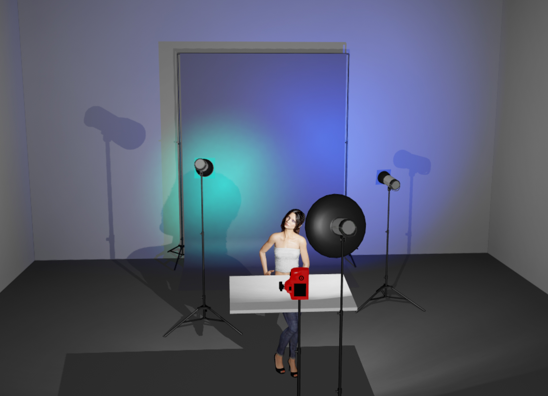 This photo was shot using two Profoto B10 plus‘ on the background with Profoto gels. The subject was lit with a beauty dish above, and a white reflector below to help minimize shadows under the chin and nose. A detailed lighting diagram is below.