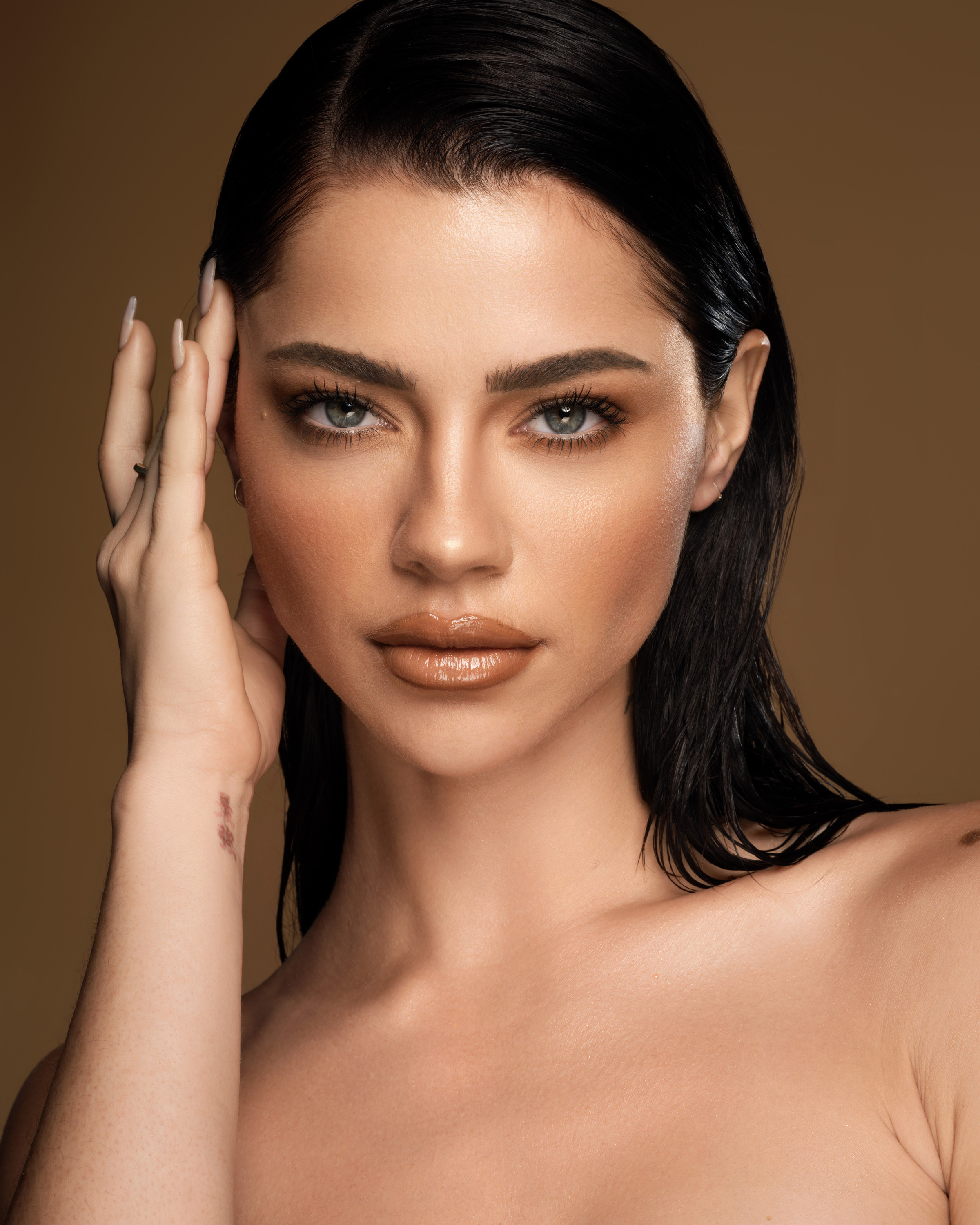 While the last example was shot using gels on the background, this shot was done by using a mocha colored seamless. Overall, the lighting was very simple on this shot, but because we were using a lot of different brown tones that complemented her skin, I decided that using a rim light would add quite a bit of dimensionality to the photo. So in addition to using my main light, which was a Profoto Pro Head in a 45-in parabolic reflector along with a silver bounce card from below, I also added a Profoto B1 from behind to add a nice rim light to the right side of her face. To compensate for only having a single background light, I pulled the light on the left further back so that it’s beam was wider, and up to the power and additional two stops. Pairing this lighting with the brown tones was able to give us this really great color palette that complemented the series well. Again, there is a lighting diagram below.