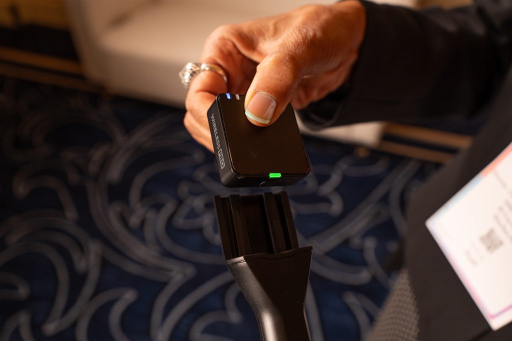 Once the glam shots were wrapped, we shifted into interview mode. A second Sony FX3 went on a tripod, Rode Wireless Pro system patched in, and I grabbed the Rode Interview GO Handheld Mic Adapter for the actual interviews. Five minutes per attendee doesn’t leave much time for fussing with gear, so being able to snap a transmitter onto the adapter and hand the whole thing to the subject was a lifesaver. Clean, fast, no awkward clipping or cable wrangling.