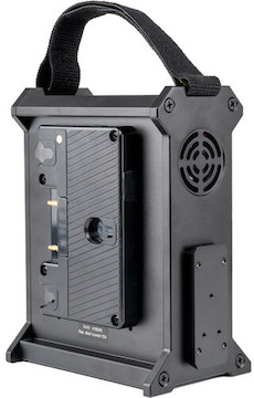 Developed for the Light Storm 600d, the Aputure Gold Mount 2-Bay Battery Power Station is an accessory that will power the light on its own with optional batteries or can add to your shooting time if you use it simultaneously with two batteries mounted on the fixture.