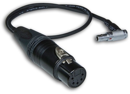 The Beachtek XLR5F to Right-Angle LEMO for ALEXA Mini 17.7-inch accessory cable connects the 5-pin balanced output of the Beachtek DXA-ALEXA or DXA-CINE preamplifiers to the balanced 5-pin input on the ARRI ALEXA Mini, allowing professional quality audio to be fed directly into the camera. Both connectors are gold plated and are genuine LEMO and Neutrik brands.