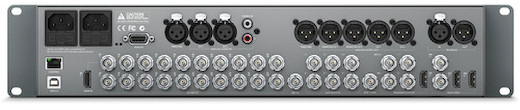 Twenty Simultaneous Video Inputs. You can connect up to 20 video sources to this switcher via 1 HDMI Type-A input or 20 6G-SDI inputs. UHD 4K video will be limited to a frame rate of 29.97p, but 1920 × 1080 sources can be ingested at up to 59.94p.