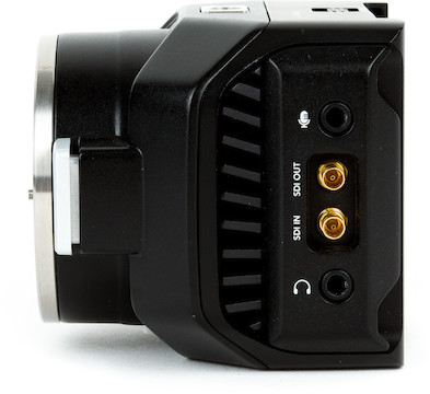 Broadcast Compatibility. The Micro comes equipped with a full-size HDMI output as well as mini-BNC connectors for 6G-SDI output and SDI camera-control input. Connect the program-feed output from the ATEM switcher to the camera’s SDI input and you can remotely control any setting in the camera; set focus, iris, and zoom on supported lenses; and even color correct. The included breakout cable also adds support for LANC control, genlock for timecode, and control for B4 lenses.