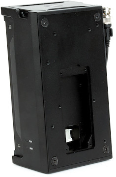 Start/Stop & Battery Pass-Through. This recorder connects to the camera’s rear molex port and passes power from a compatible battery plate to the camera. Camera communication is handled by an attached 6G-SDI cable, and allows for direct from the camera SSD recording start/stop and memory information. Keep in mind that using the SSD recorder requires both rear SDI in and SDI out ports, leaving only the camera’s LCD or the front SDI port for monitoring.