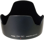 The used Canon EW-78C Hood for the Canon EF 35mm f/1.4L Lens is primarily designed to prevent unwanted stray light from entering the lens by extending and shading the end of the lens.