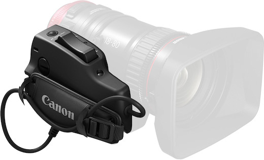 It has an ergonomic form factor for comfortable operation and features a seesaw rocker for zoom control, as well as REC start/stop and ONE-SHOT AF buttons. Because the grip provides electronic control for the drive unit, rather than mechanically driving the lens itself, you can choose to mount it directly to the side of the lens (using an included screw-on rosette) or mount it to an ARRI standard rosette elsewhere on your shoulder rig, as long as the 20-pin cable is still connected to the lens drive unit.