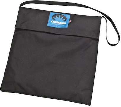 The used black 4550 Sack for Chimera 1×1 LED Lightbank from Chimera is a two pocket canvas sack. One pocket is for the screen and the other holds the frame and body. It’s carried by a shoulder strap and features a touch fastened closure.