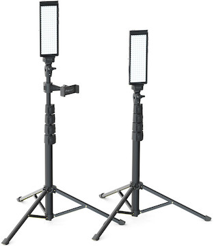 It includes two stylish LED lights, each with 180 bi-color LEDs, 25 brightness settings, and 24 color temperature settings ranging from 3200 to 5600K. Also featured with this kit are built-in rechargeable 5000mAh lithium batteries, which can work continuously up to two hours on a single charge. For modern-day creators a 360° adjustable smartphone holder is included, as are two telescoping light stands, which are height adjustable from 22 to 63".