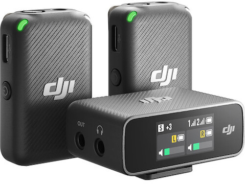 Wireless Audio for Everyone. The DJI Mic Kit is designed to work with action cameras, weighing in at 30 grams, which is the same as two average chocolate chip cookies. The receiver mounts via hot shoe adapter to a camera or mount, and has USB-C, Lightning, and 3.5mm TRS ports, making it compatible with just about any modern smartphone, tablet, or computer.