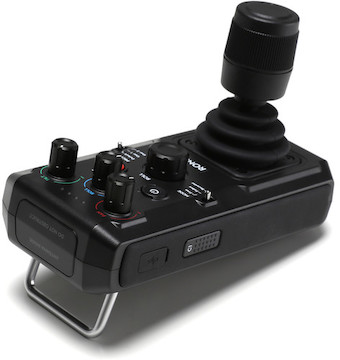 The remote connects to the Ronin 2 via 2.4 or 5.8 GHz frequencies which can be selected depending on environment. Use the joystick to point the camera and fine-tune the response of each axis using the individual speed knobs at the top of the controller. You can also switch operating modes and profiles using the side switches. Lastly, the red REC button wirelessly sends a record start/stop signal to a compatible camera connected to the Ronin 2 with the appropriate cable.