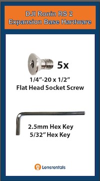 The DJI Ronin Expansion Base Kit for RS 2 is an add-on accessory for the DJI RS 2 Gimbal Stabilizer that allows users to mount the gimbal head to car mounts, jibs, and cable cam systems. The kit includes the tethered control handle, external battery adapter, and a universal mounting plate with 1/4"-20, 3/8"-16, and 8mm mounting options for wide compatibility. Please note that this kit is not compatible with the DJI RSC 2 gimbal.