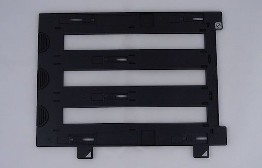 The used Epson 35mm Strip Film Holder for V800/V850 Pro Scanner accommodates up to 18 frames (three strips, up to six frames per strip) and is offered here as a spare or replacement.