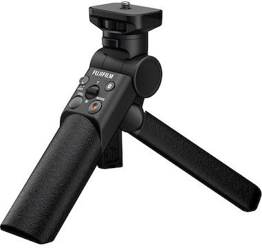 The Fuji TG-BT1 Bluetooth Tripod Grip is a contoured accessory grip for handheld shooting that can control select Fuji X-series cameras via Bluetooth. It also doubles as a compact tabletop tripod. Key features include: