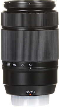 Telephoto-Range Zoom. With a 35mm-format focal-length equivalent to 76-350mm, the Fuji XC 50-230mm f/4.5-6.7 OIS II is great for portraiture and for shooting distant subjects. Its rounded seven-blade diaphragm helps produce pleasing bokeh when you’re working with selective-focus and shallow depth-of-field techniques.