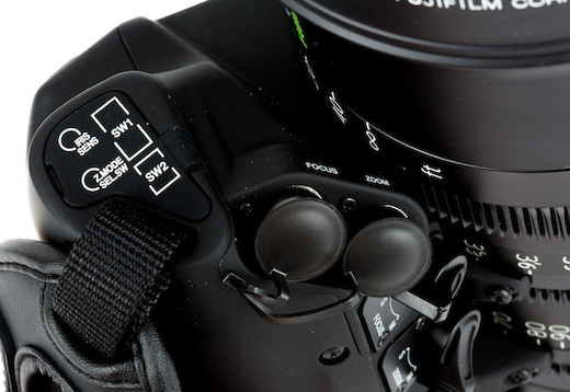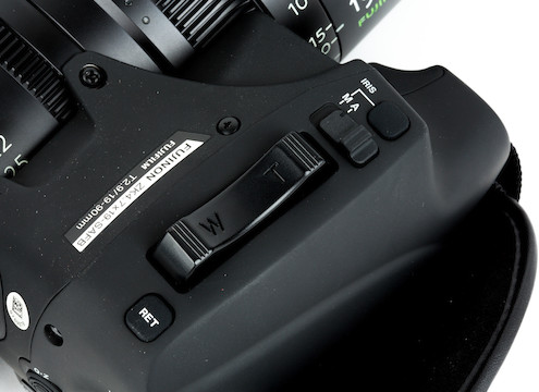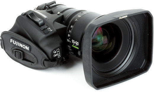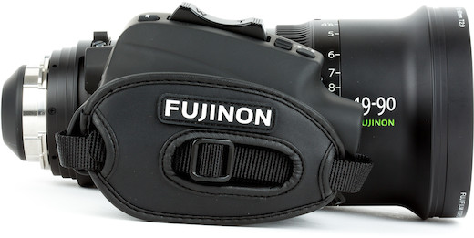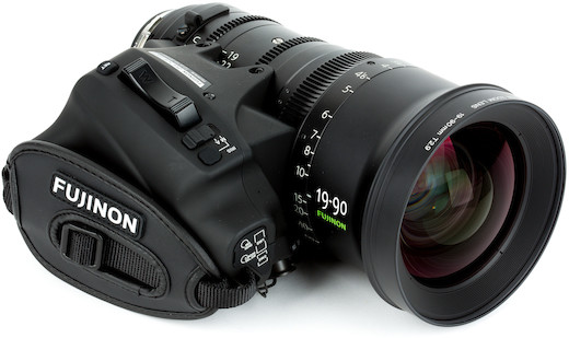 Power Zoom. The Fujinon 19-90mm T2.9 Cabrio Premier features a detachable ENG-style hand grip with a zoom rocker. The lens is powered by either an external connector or the PL mount’s Cooke/i Technology interface.