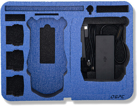 The proprietary closed-cell foam is precision-cut to encase an Air 2S drone, protecting it from dust, liquids, falls, and fungus. This foam insert houses the Fly More Combo, giving pilots the battery power for four complete flights, plus a handful of accessories. Those who fly with a smart controller can make room by easily removing a pre-cut section of foam.