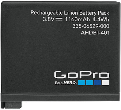 The used Rechargeable Battery for HERO4 is a lithium-ion battery with a 1160mAh capacity. It is exclusively compatible with the HERO4 Black and HERO4 Silver cameras.