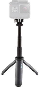 Portable Extension Pole and Tripod. The GoPro Shorty’s pocket-sized build makes it the perfect option for setting up quick tripod shots and for grabbing impromptu handheld shots, and the standard three-prong accessory interface makes it easy to lock your GoPro in place. The Shorty can extend to 8.9 inches and retract down to 4.6 inches.