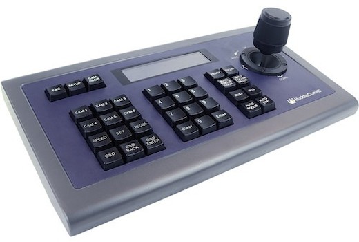 Handy Hardware. This third generation PTZ keyboard allows for near-zero latency pan, tilt, and zoom movements with variable speed control by way of an ergonomic, 3-axis joystick. The straightforward keypad brings presets, swift camera selections, and OSD control to your fingertips while a large LCD provides an easy to understand interface.