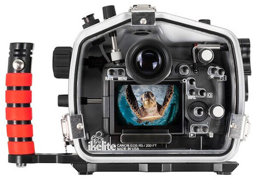 Heavy-Duty Underwater Housing. Ikelite’s heavy-duty housings are contoured to the camera, completely corrosion-free and super durable. The transparent backing allows for a clear view of the main o-ring seal, port o-ring seal, and camera controls. We choose to rent Ikelite-branded housings because they give you access to almost every camera control underwater. This housing is only compatible with the Canon EOS R5.
