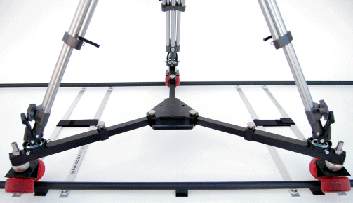 The Indie-Dolly Singleman is a lightweight tripod dolly with receptacles that will adapt with our Manfrotto heavy-duty tripods. It comes in a single kit with a set of trackwheels for use with Indie Straight Track kits.