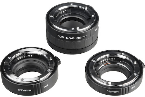 Three Tubes. The Kenko Extension Tube Set for Nikon comes with 12mm, 20mm, and 36mm tubes that you can use individually or in any combination for macro work.