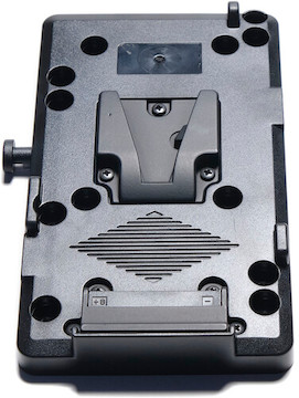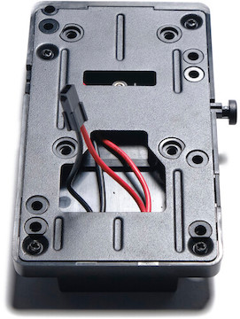 The low-profile plate provides the ability to power the head using a single V-mount battery, and it mounts using internal magnets and four screws. It connects to the RC-type power connector on the vertical side of the head.