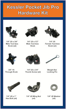Fifty Pound Capacity. The Kessler Crane Pocket Jib PRO is the perfect balance of strength and portability. The jib can handle up to 50 lbs of gear while collapsing to an overall length of 46in. for travel. Fully extended, you’ll get around 80 inches of reach and the jib weighs in at 26.7 lbs.