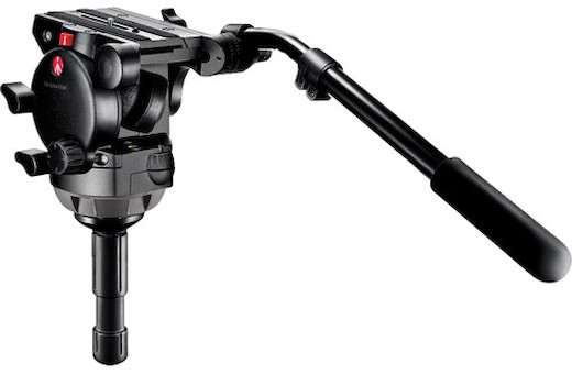 The used 526-1 Professional Fluid Video Head from Manfrotto supports camera rigs up to 35 lb and includes the 357PLV-1 sliding plate with secure, two-screw 1/4"-20 or 3/8"-16 mounting.