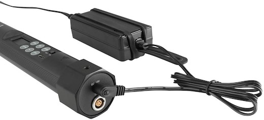 Battery Powered. The PavoTube II is powered by an internal lithium-ion battery and can run for 86 minutes at full brightness while completely untethered. You can fully recharge the LED in 2 hours, and you can use the included AC adapters to power the light during longer shoots.
