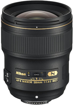 Fast-Aperture Wide-Angle Prime. The Nikon 28mm f/1.4E ED AF-S’s focal length makes is excellent for landscape, street, documentary, and architectural photography. Its fast aperture gives you stellar low-light performance with a shallow depth of field. To top it all off, its nine-blade aperture makes sure all of those out-of-focus bits are smooth.