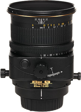 The used Nikon 85mm f/2.8D PC-E is a perspective-control lens with full tilt, shift, and rotation capabilities. Key features include: