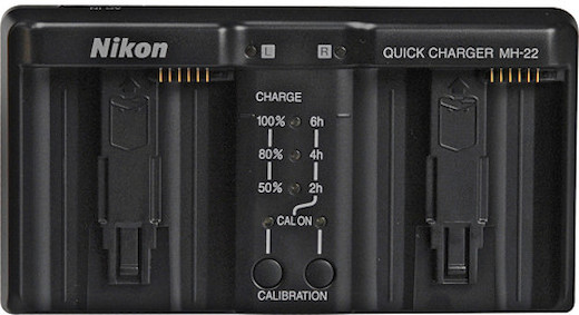 The used Nikon MH-22 Quick Charger is a Dual Bay Battery Charger for Nikon EN-EL4 & EN-EL4a Rechargeable Lithium-Ion batteries. The charger is capable of being used internationally* because it can accept 100-240V AC power (auto-switching).