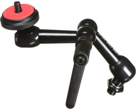 All three-joints can be simultaneously locked using the single central locking knob. While supporting camera lights and monitors, you can move the arm horizontally or vertically, as well as achieve tilt adjustments to obtain the best possible view. With equal length on both sides, the arm offers increased strength and holding resistance.
