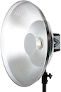 Light Quality. This modifier offers an even light spread with defined shadows. When used with the include deflector, it blankets the subject with a bright, even light that allows for more defined shadows than a typical softbox. If shadows seem a little too harsh or if the specularity of shiny objects is too extreme, we also include the translucent white diffusion sock that mimics the light quality of a softbox at the expense of 2.5 to 3 f-stops.