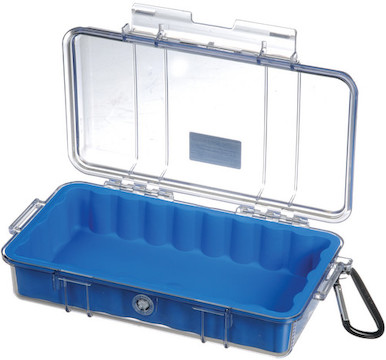 The used Pelican 1060 Clear Micro Case (Blue) is an unbreakable, watertight, airtight, dustproof, chemical-resistant and corrosion-proof case. It is made of copolymer and has a matching liner. The case has a speed lock, clear purge cap.