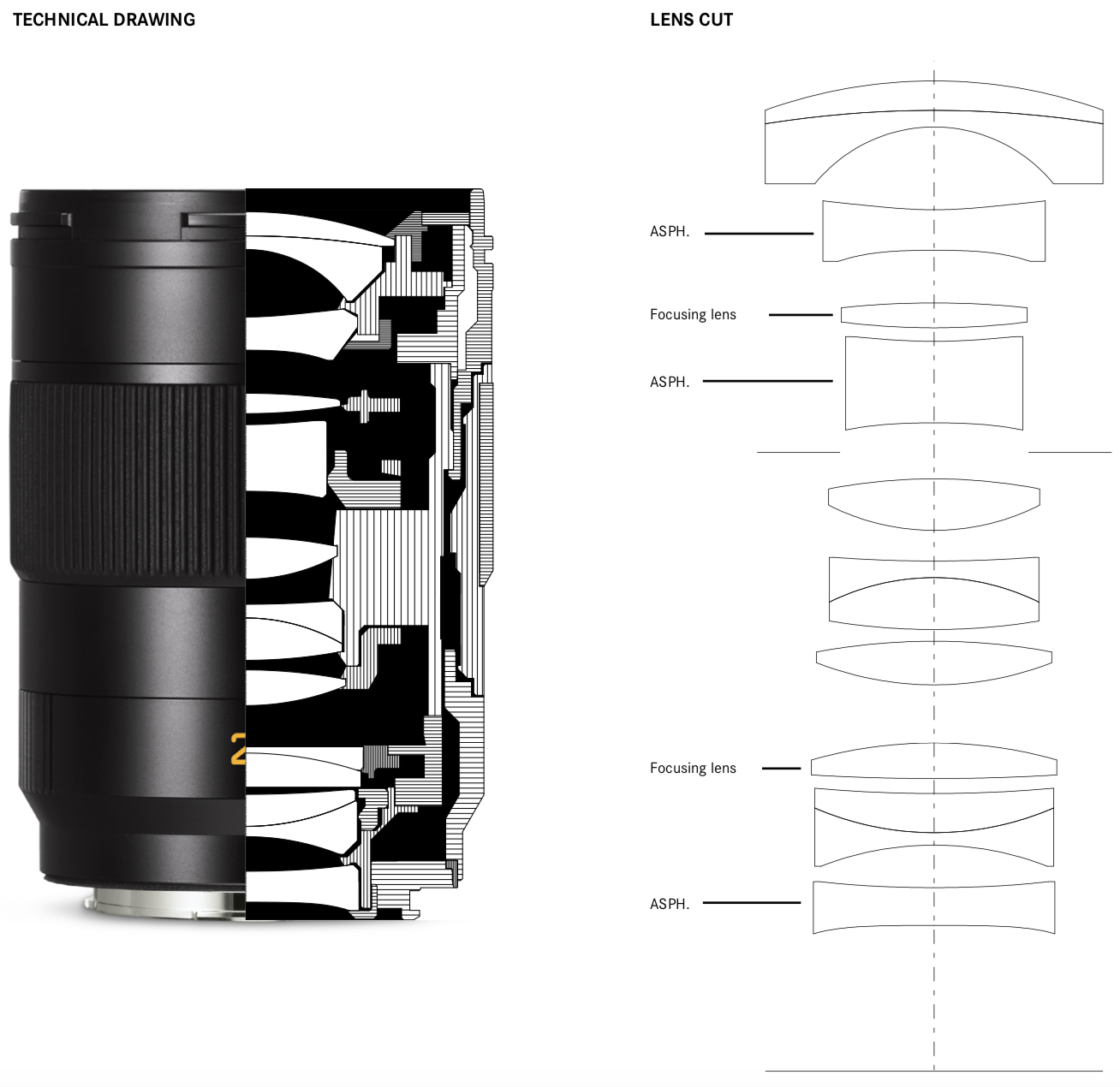 Highly Corrected Optical Design. The Leica 28mm f/2 ASPH APO-Summicron-SL has a ten-group/thirteen-element optical design. There are six aspherical elements correcting distortion and spherical aberrations to the highest degree. The apochromatic design corrects for chromatic aberrations while the new multilayer coatings suppress surface reflections, flare, and ghosting, creating images with higher degrees of contrast and acuity.