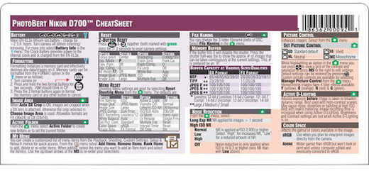 The used Photobert Cheat Sheet for the Nikon D700 Digital SLR is a comprehensive overview of this dynamic digital SLR by Nikon.