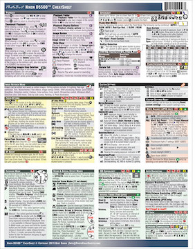 The used PhotoBert CheatSheet for Nikon D5500 DSLR Camera provides an abbreviated, color-coded guide to the controls and settings of your digital camera.