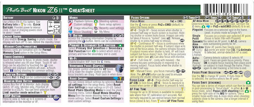 Bert has distilled the manual information into a compact, abbreviated, double-sided, full-color guide. The reference guide serves as a quick, convenient alternative to the manual, offering tips and descriptions of features to help you learn about the functions of your Nikon Z6 II camera.