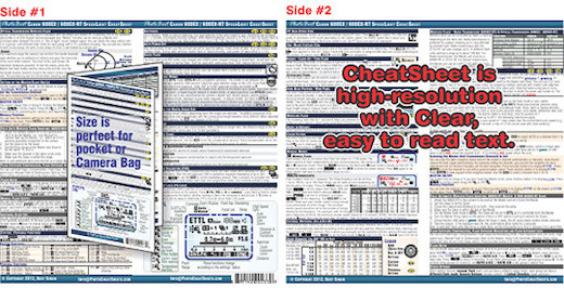 The used CheatSheet for the Canon 600EX-RT / 600EX Speedlights from Photobert is an all encompassing, take-along reference card that covers all the functions, features and buttons of your Canon flash.