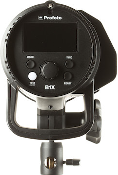 Profoto Build. The B1X 500 AirTTL borrows much of its design from the company’s D1 monolights. It uses the same durable polymer housing, features a built-in fan, and has an integrated 77-degree reflector. The controls and display on the rear panel are intuitive and user-friendly, and a mini-USB port behind the battery lets you update the firmware when new features are added. The B1 strobe is compatible with the same modifiers as the D1 monolights, allowing simple integration for existing Profoto users.